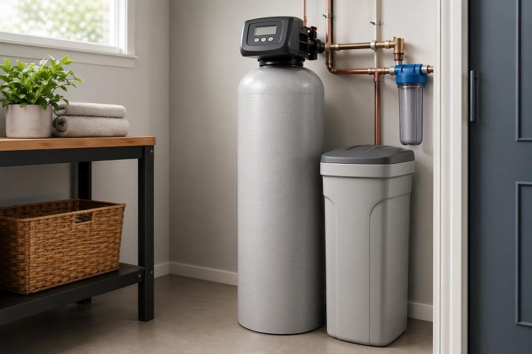 Install a water softener that helps reduce mineral buildup and improve water quality at home.